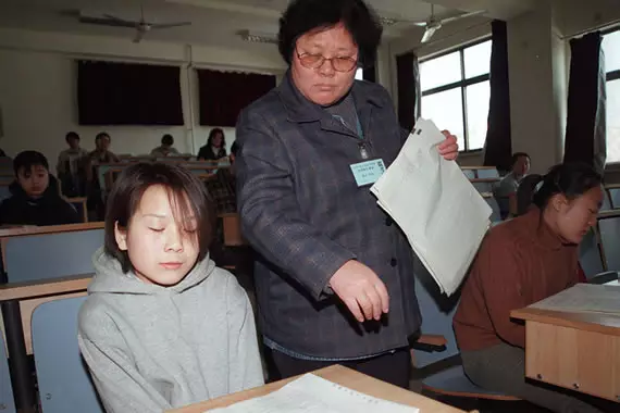 2003年6月7日,考生在山西省实验中学考点答卷。2003年开始,高考考期提前1个月。