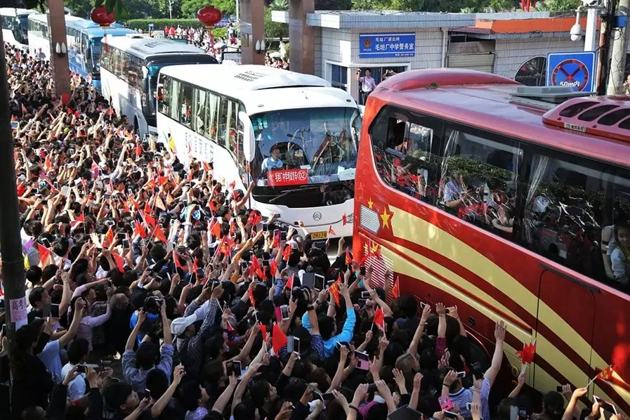 2015年6月5日,安徽六安,被称作为“亚洲最大高考工厂”的安徽六安毛坦厂中学近万名高三考生前往市区备战高考,当地民众和高考考生家长过万人前往送考。