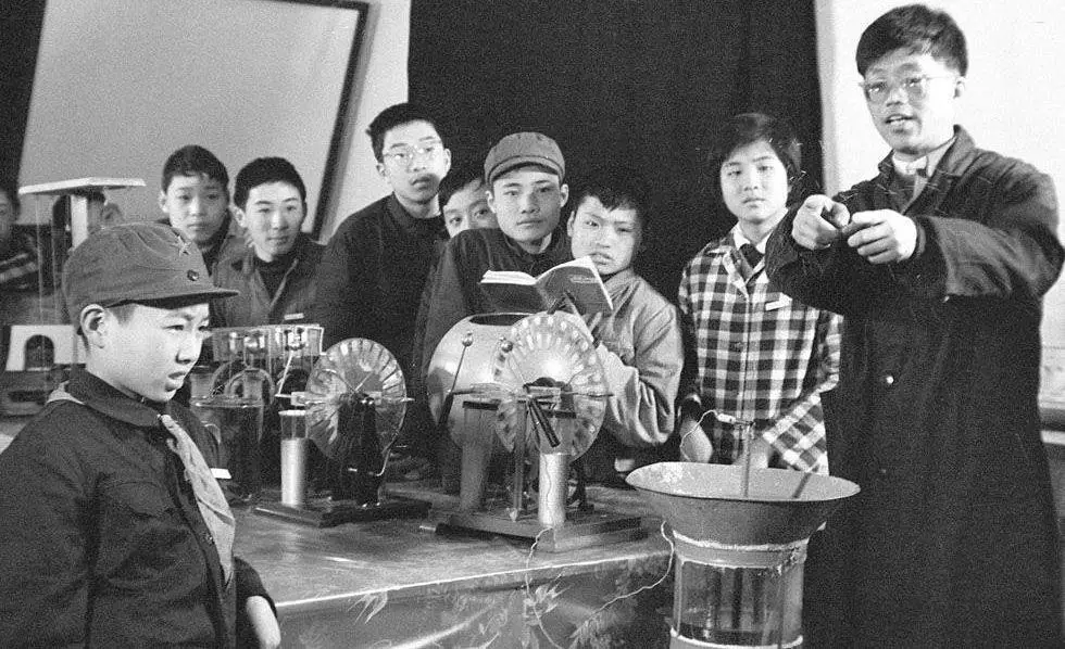 1977年,中国科技大学成立少年班,招收了21名少年大学生。这是少年班的学生在上物理实验课。