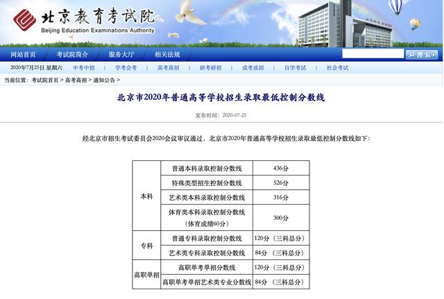 信息来源:2020-07-25 北京教育考试院网站
