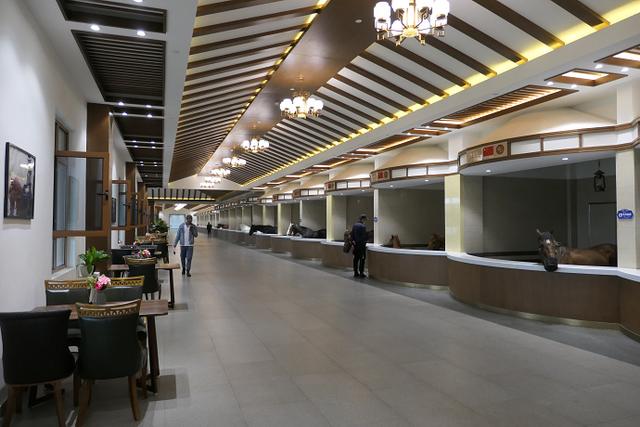 在皇家马厩,大概有几十匹名马。马厩从内到外整体环境清新自然,干净整洁。世界前20位的宝马,在这里几乎都能找到。高大的阿拉伯是很多世界名马的“始祖”,说起著名的英国纯血马,也是出自阿拉伯马,阿拉伯马排行第一的位置,可以说当仁不让。荷兰温血马,当然在各大马术竞赛上用的赛马也是相当昂贵的。