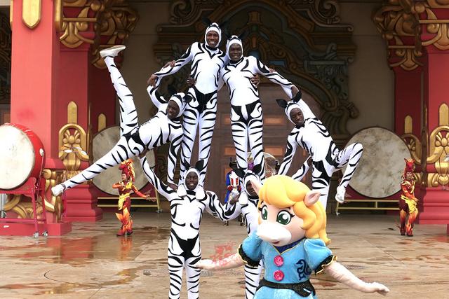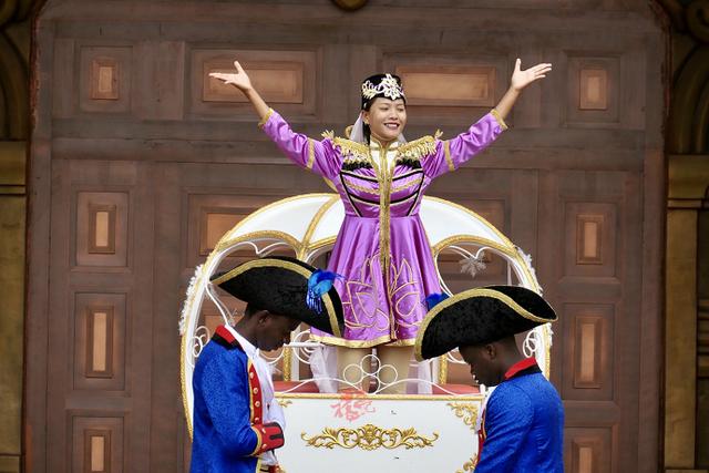 每天早上九点半在舞马世界大门前开启盛大的迎宾入园仪式,跟随着音乐响起,装扮盛装的舞者们瞬间点燃现场,游客们很快跟随进入状态。