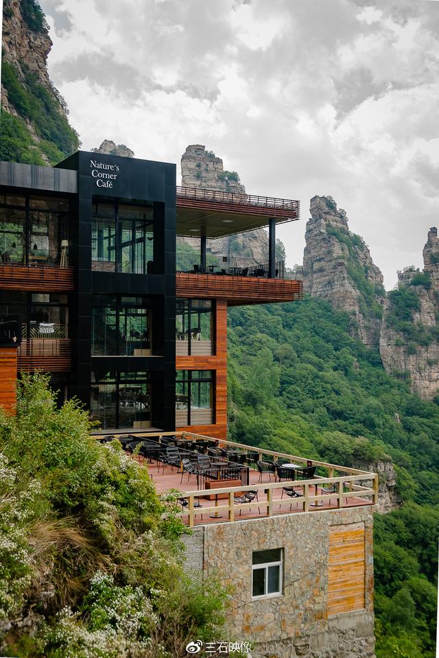 而在1600米线路上,虽然没有餐厅,但是却有另一份惊喜。坐落于悬崖之上的Nature’s Corner Cafe自然之角咖啡厅,绝对是文艺小资们的天堂,很难想象在这样一个险峻之地,居然能存在这样一个典雅去处。坐在这里,品味一杯醇香的咖啡,眼前是蓝天白云下的连绵群山,当真悠然如仙境。