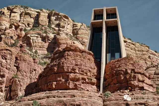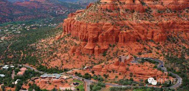 Sedona还有一处值得一看,Chapel of the Holy Cross圣十字教堂,是女艺术家Margurite Staude在1956 - 1957年完成。建筑高高地镶嵌进红色岩石中,却与周围环境融合为一体。曾经为大明星Johnny Depp或者Nicholas Cage所拥有。现在还是私人物业,不得入内。