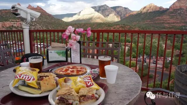 我走进了一间三文治餐吧,露天座位可以看红石。这里许多家酒吧或餐厅都有露天后花园,正对着Sedona 最负盛名的红色山岩。