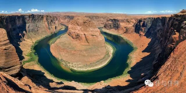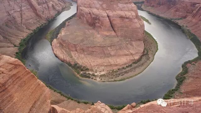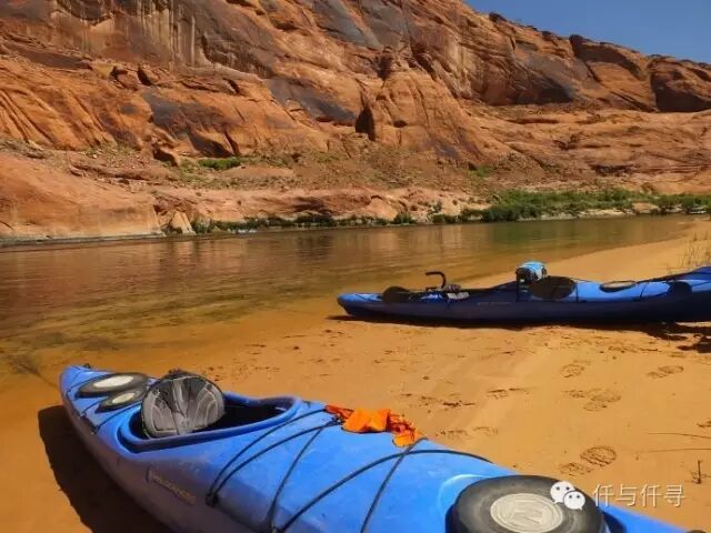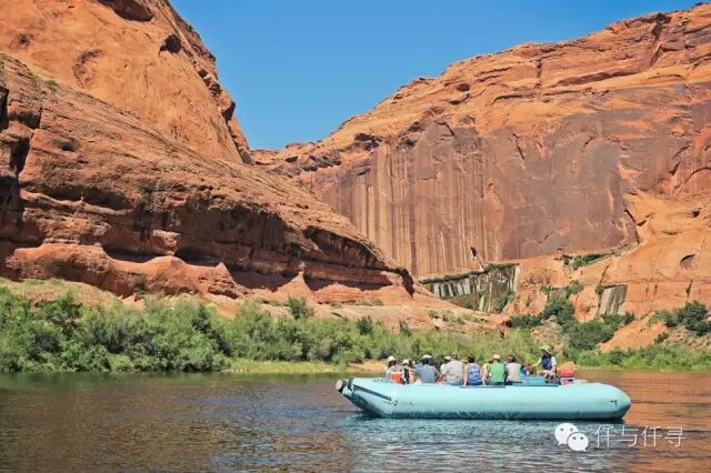 仔细看的话可以发现,科罗拉多河面上有两三组人在泛舟,试想艳阳高照,自定悠闲地从船上观赏悬崖,顺流缓绕马蹄弯一圈,用漂浮的方式亲近岩壁与河流,多么地写意情怀呀~所以到佩吉小镇实在应该参加ColoradoRiver