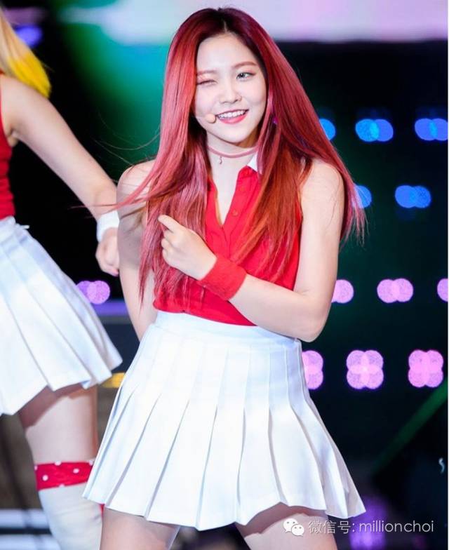 金小小妹在刚结束的时装周登台,才刚刚把头发染成潘通粉红。