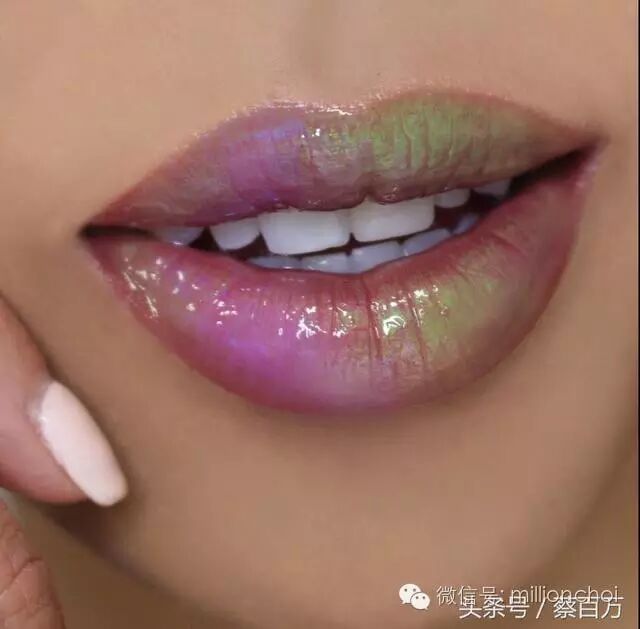 当大伙们被韩流彩妆师引导,热情地扑向桃红色唇妆时,另一边厢一组以彩虹般的折射光感,在光线照射下从不同角度能产生各式色彩,如同迷幻宇宙的人鱼唇妆效果让美妆控们都玩疯了。