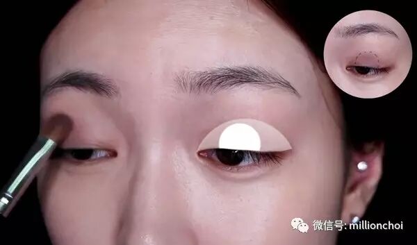 首先可以选择偏肤色系或藕色系的眼影,将它画在整块眼皮上,最后可以在眼皮中间做些加强。