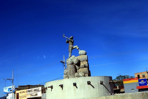 车子接近小镇Tequila 时,路边出现的这个雕塑展示了工人正在剥龙舌兰果果的皮。