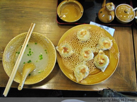 晚饭是在武侯祠旁著名的“皇城坝”小吃城逮的。菜单如下:原汤抄手一碗,内有7只大馅儿鲜肉混饨,仅售3元。风味锅贴一盘,6只锅贴不辣巨香玩命鲜,仅售5元。