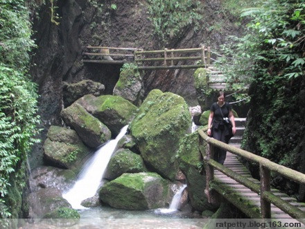 下山我们选择了另一条路。一路的木栈道,一路的瀑布,除了无法在高度和宽度上与庐山的三叠泉和贵州的黄果树相比之外,青城后山是迄今为止我所见到的瀑布最多的一座山!