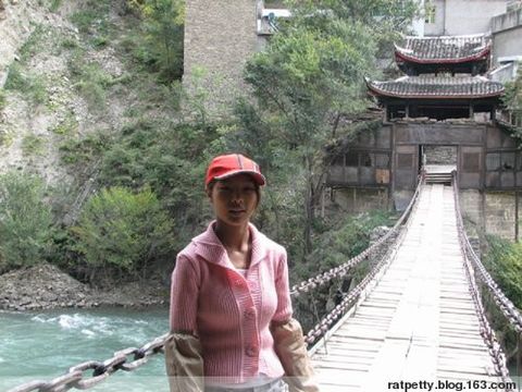 饭后,宾馆的一位小姑娘主动提出带我去看三官桥。这是一位18岁的藏族女孩儿,名叫杨康美(这边的很多藏族人都有汉族名字)。一路上小杨告诉我,她家在宅垄乡马尔村三组,房在半山上,从县城要先坐5块钱的车,下车后向上爬很高才能到达。她有一个哥哥和一个弟弟,哥哥在外地打工,弟弟正在读小学。因当年家里境况不佳,所以康美只读完了小学,如今在宾馆做服务员,每月有300元(包吃住)的收入,她仅为自己留100元,其余尽数补贴家用。