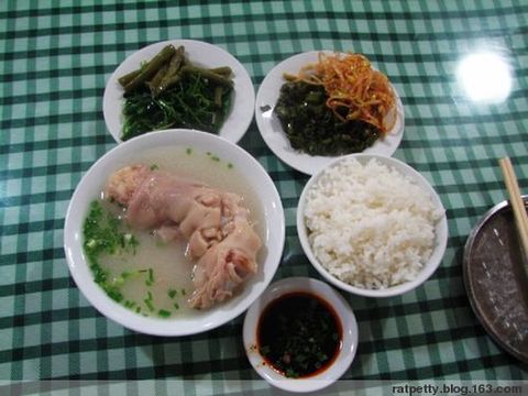 深圳的猪蹄几乎全是红烧,味道如何姑且不提,单单是给牙齿带来的沉重负担就让我常常望而却步。安德蹄花则不然,在白色大瓷碗里睡着一只完整的、白白嫩嫩的、处理得一根杂毛都没有的猪蹄儿。然而,你筷子一上去它就会自动解体,决不让你多费半点儿力气!那汤也如牛奶般白白净净,味道甚是鲜美。