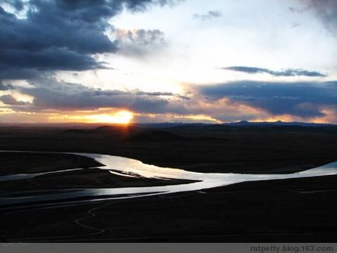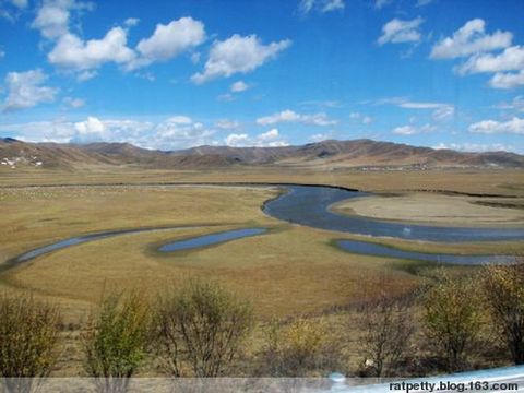 约一小时后开始下川藏北线转而向西。山势渐渐变缓,视野逐渐开阔起来,预示着已进入红原大草原。这里海拔在3500米左右,晚秋的草原虽然已失去了翠绿,然而,群山环抱中的高原湿地上溪流条条、回转曲折,牛羊片片、觅食悠闲。