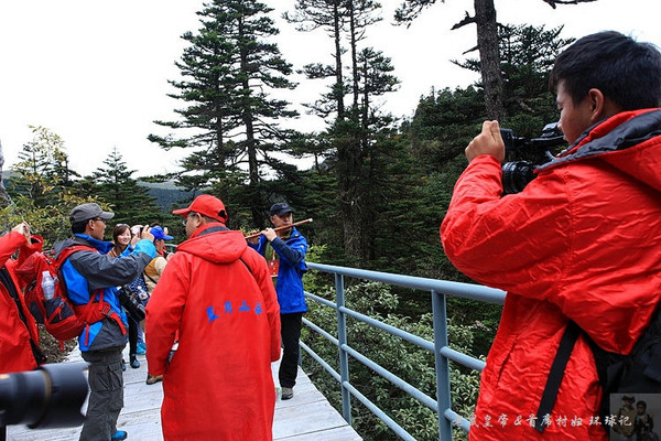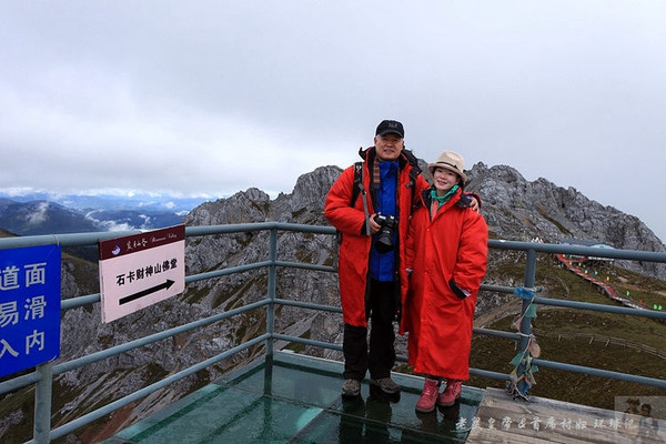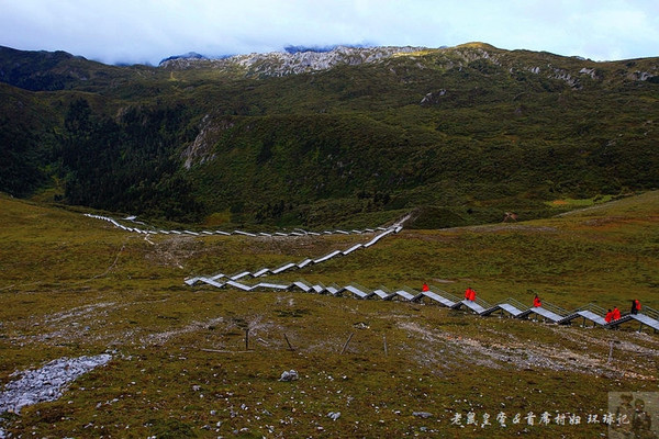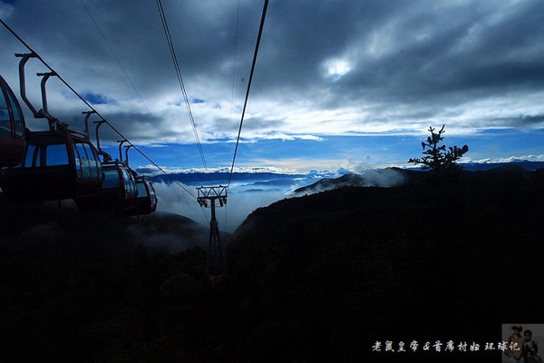 在亚拉青波牧场大家短暂休息拍照,然后每人领取了食物和水,复又登上缆车,继续往石卡雪山顶峰进发。