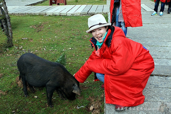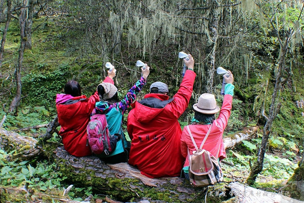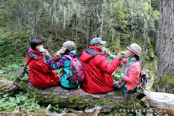 可惜天公不作美,我们在石卡雪山顶峰没能见到心驰神往的八座神山。不过,从石卡雪山山顶往下看,整个亚拉青波牧场就像镶嵌在森林中的绿宝石般熠熠生辉璀璨晶亮。对此美景,人人也都醉了。