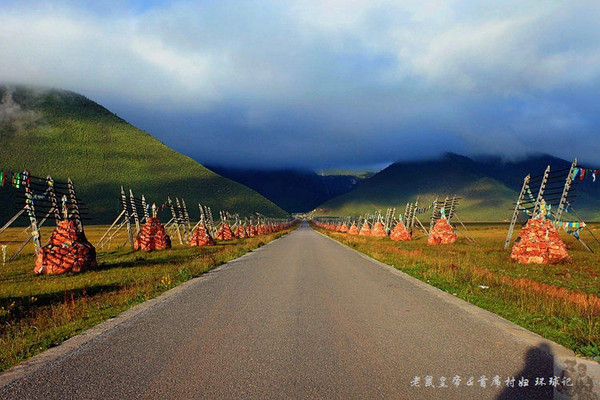 路两边成双列而立的玛尼堆,为香格里拉平添一份圣洁。