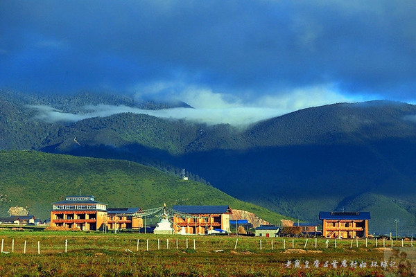 高山草原蓝天白云民居牛羊,这就是香格里拉。