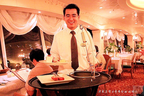 但是,游轮吃饭B格还有更高的,那就是:放着免费餐食不要非得跑去额外花钱的。因为需要另掏腰包,前去消费的人自然就少,人一少,范儿就粗来了。