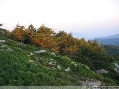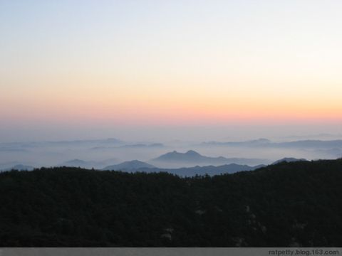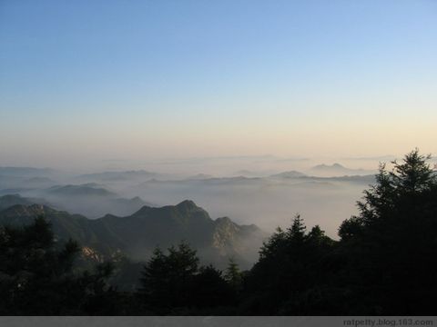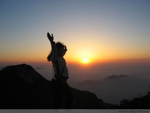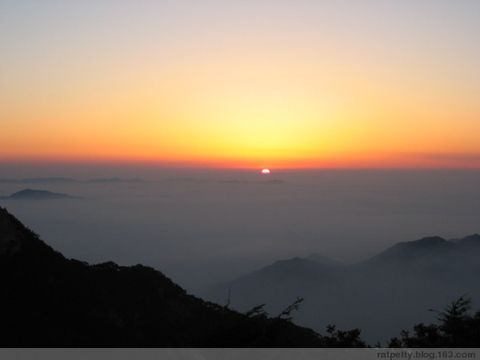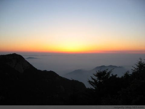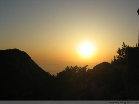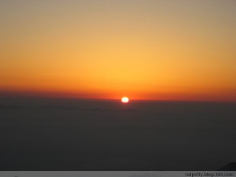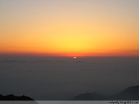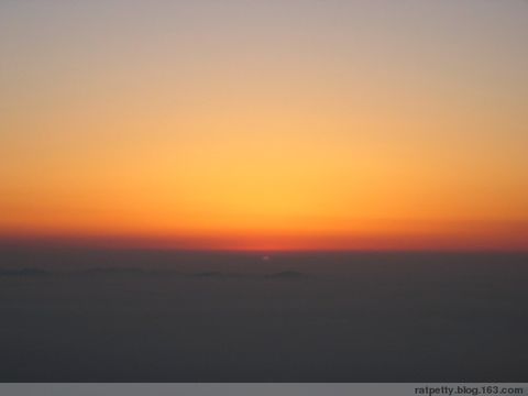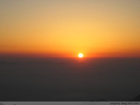 2006年7月18日清晨,攀岩隔着帐篷轻轻地唤我起床去看日出,我迅速想起了昨晚山上那位茅厕老人的话:“今晚有阵雨,明天多云”。