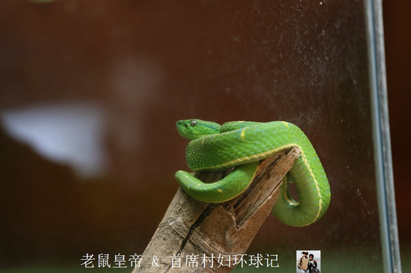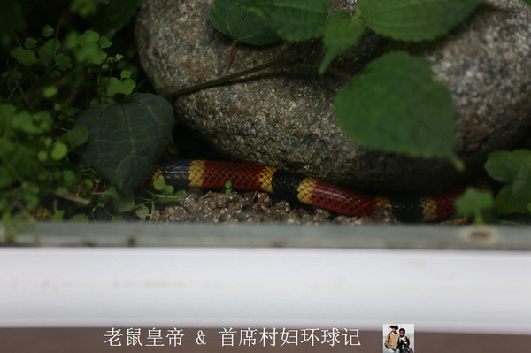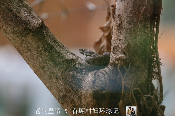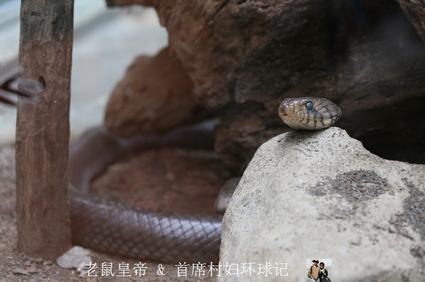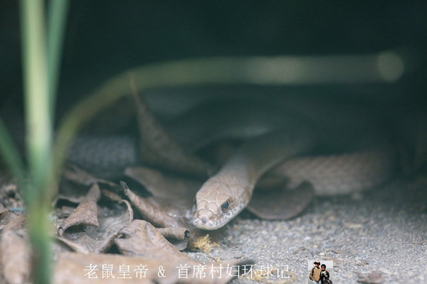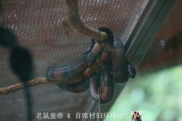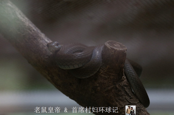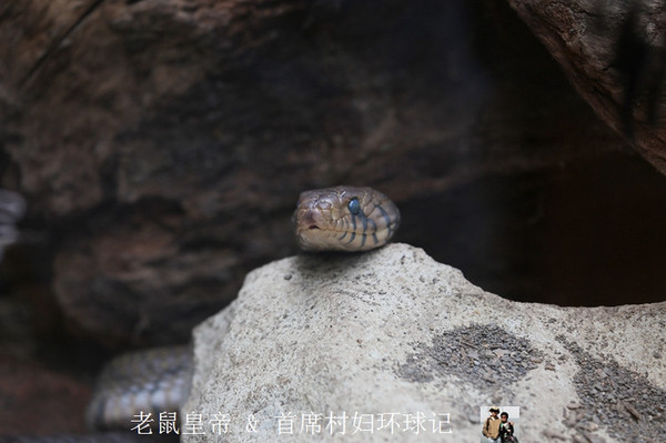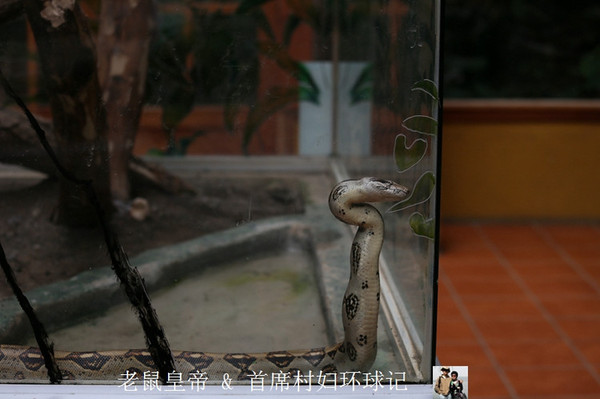 在小花园里拍完蜂鸟,皇帝兴奋异常,手持15美金的套票来到了蛇蛙馆。馆内空无一人,黑乎乎阴沉沉,有点毛骨悚然。皇帝和村妇天生都怕蛇,村妇尤甚,简直到了闻蛇就尖叫的地步。相比之下,老鼠皇帝见了蛇虽然也怕,但不至于不敢看。毕竟,自家子民经常遭蛇类吞食,作为鼠类至尊,应该充分体察鼠情,帮助子民们找出相应对策才是。否则,谁还会尊你为老鼠皇帝呢?
