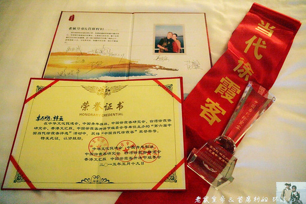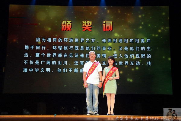 获奖者胸前挂着大红绶带,上书“当代徐霞客”。