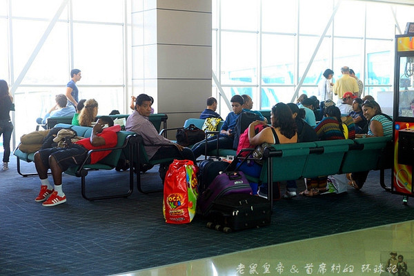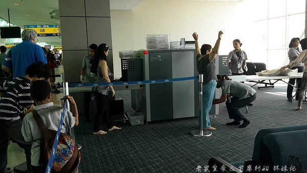 安检:因为我们这班飞机是飞美国迈阿密的,所以进入登机候机室还要进行二次安检,男人要解下皮带,男女都要脱鞋子。