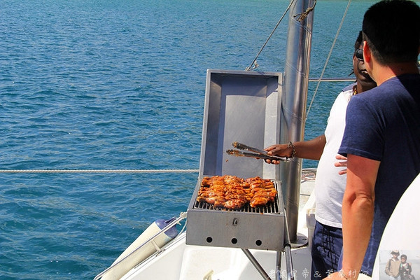 躺在船头的网兜上,头顶蓝天白云,身下是蓝色海洋,身心极度散漫的结果是,一妹子的新苹果机直接掉海里去了......