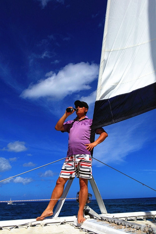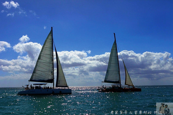 通过酒店预订的双体船出海套餐65美金/人,除了融身于天海一色尽情享受阳光浴偶尔跳个海来个浮潜外,最大的看点自然是去邂逅大海里的精灵——海豚。毛球所拥有的主要是宽吻海豚,这种海豚比较常见,因为拉长的吻部而得名。