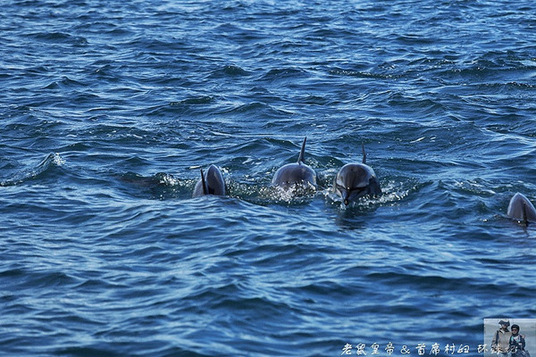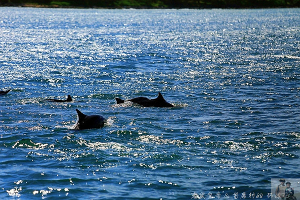 仰光肆无忌惮地照射着蔚蓝的大海,海面像个青春俏皮的小姑娘闪烁着bling-bling的光芒,天气好到让人忘乎所以,直到成群的海豚到来才将我们拉回现实。这些精灵成群结队地神出鬼没着,光滑的脊背在粼粼波光里上下翻飞,时不时还表演下前滚翻什么的,就在逗弄得人类啧啧称奇频按快门的时候却又忽然消失不见,等到你几乎放弃再次与它们见面的希望时,它们却又再次轻灵灵地滑出水面,姿态优雅而傲娇。