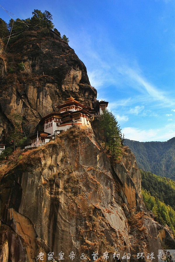 虎穴寺(Taktshang Goemba,不丹语意为“虎穴”),位于悬崖峭壁上,据说莲花生大师乘雌虎坐骑来此修行,因此此处被奉为圣地。