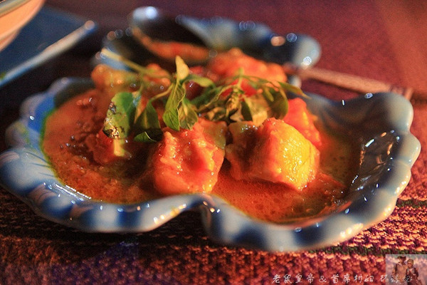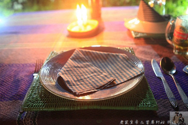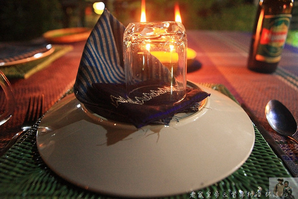 绿象餐厅隐身在一座貌似私人大宅院内,门口赫然一头披挂艳丽的大象,用它的美丽和端庄告诉人们,这是个典雅有品位的去处。院子很大,绿茵中闪烁着一张张桌子,这里用“闪烁”是因为每张桌子除了摆放了与大象有关的饰品外,都点着两只蜡烛,估计是主人特意为情人节营造的浪漫气氛。