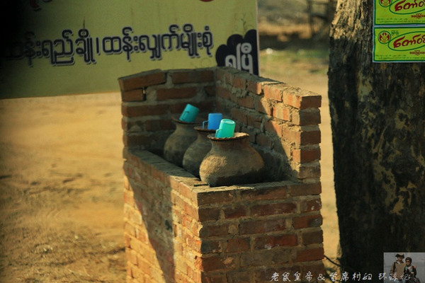 在缅甸,无论农村城市,只要是在路旁或行人经常路过的地方,都能看到一只只摆放在路边的土罐,它们或被安放在特制的土台上,或摆在商店门前的小桌上,有的甚至就栖身于树杈间。但,有一个共同的特点:摆放位置十分显眼,很容易被路人发现。