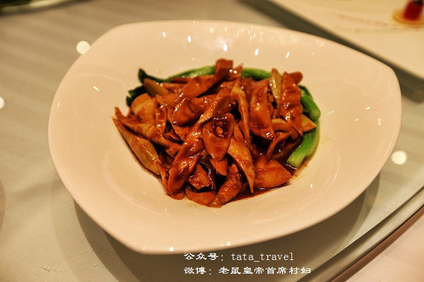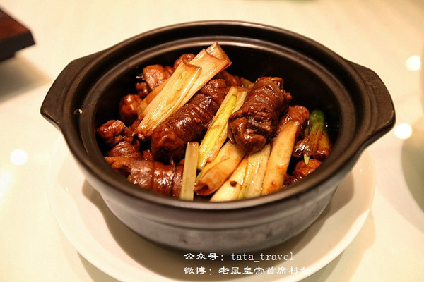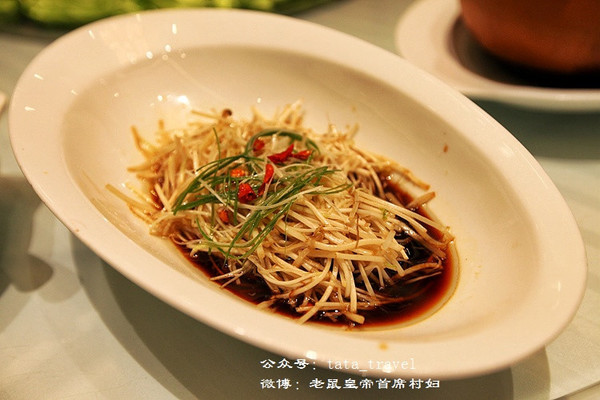 第二道要吃的是:白芹菜。早在800年前的南宋时期,生活在溧阳县城城郊唐家村、钱家村一带的农民已经开始种植白芹菜。每到秋天,农民把水芹的根茎一行一行地排种在施足农家肥的土垅上,待水芹新苗冒出土面5至10公分时,壅土覆盖,仅留5至10公分的茎叶在外面,任茎鞘在土壤中生长。待到初冬,将土扒开,就露出水芹洁白如玉的茎鞘,故又叫“溧阳白芹”。溧阳白芹是百味蔬菜中的佼佼者,且因为“菜长多高土就要埋多高”的特殊培植方法,始终不见阳光,所以菜极嫩、极鲜。根脆、茎嫩、叶青、水份多,色白如雪,特别是开春后的水芹,根越粗越脆,水份越多,且嚼而无渣。白芹可以配肉片、冬笋炒,或在汆水后凉拌,总之,两相宜!