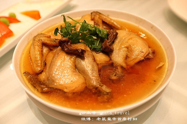 爬了一天南山,难免辛苦,晚间不妨叫一客玛咔炖乳鸽。大补哇!皇帝村妇素不喜玛卡的气味,但是和乳鸽一起炖成汤,居然没感觉到味道怪。