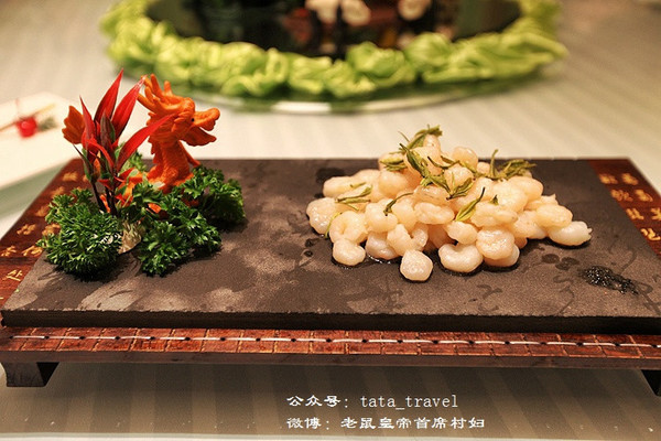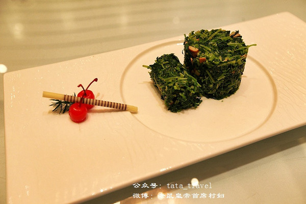 第三道:白茶虾仁。天目湖白茶貌似名气没那么大,却有有钱买不回的江湖地位。白茶外形细秀,形如凤羽,色如玉霜,白茶的氨酸含量比一般茶叶高2倍,喝白茶能使血液免疫细胞干扰素分泌量提高5倍,对抵御病毒侵害很有好处。白茶对生长环境要求很高,一点点污染就会让它夭折。天目湖因其独特的生态环境而成为白茶开发和生产的宝地。以白茶配虾仁,双白合璧,好看好吃还营养。