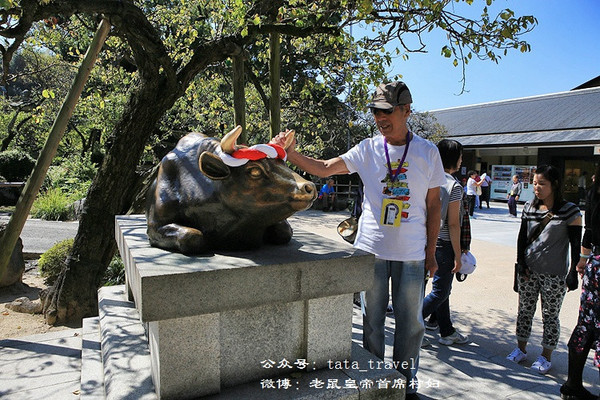 福冈太宰府,据说这头铜牛十分灵验,摸哪儿都有效。皇帝建议92老正太摸摸它的腰(老人家时常有点小腰痛毛病),没想到老正太直接就把手按在了牛角上。“人就是要活得自由独立有棱角”,皇帝是这样解读的。