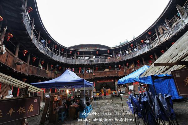 大赛必经之路——田螺坑土楼群是世界物质文化遗产地,其标志性楼群“四菜一汤”依据“金木水火土”五行相生次序而建,一方四圆,方楼居中,名“步云”,四座圆楼分别为振昌楼、瑞云楼、和昌楼和文昌楼,整座楼群建成历时304年。据说在上世纪六七十年代,此楼群曾被美国中央情报局根据卫星图片误判为中国的核基地。