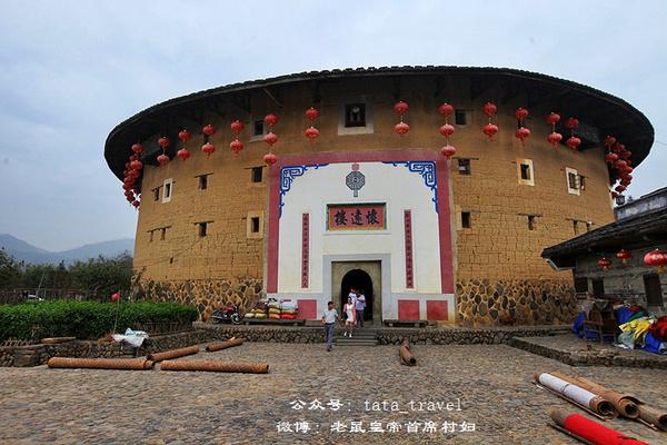 福建省南靖县山川秀美空气清新物产丰富,其境内有多达15000座土楼而号称“土楼王国”,因为历史悠久数量众多规模宏大造型奇异风格独特,南靖土楼还获得了“神话般的山区建筑”的光荣称号。从时间上看,这些土楼多产生于唐、宋,成熟于明、清两朝,并一直延续至今。从建筑学角度看,土楼是世界上独一无二的山区大型夯土民居建筑,它们依山就势、布局合理,充分吸收了中国传统建筑的“风水”理念,而且自成体系:一座土楼一般高三至五层,一层为厨房,二层为仓库,三层以上为起居室,其内可居住200至700人。就居住而言,土楼不仅冬暖夏凉,而且具有很强的抗台风、抗地震能力,还兼具防盗、防兽、防火、防潮、节约、坚固等特点。土楼的另一独特之处是建材。因为地处偏僻山区,土楼的建筑材料只能就地取材,生土、石灰、细砂、糯米、红糖、竹片、木条和水都是可用之物。