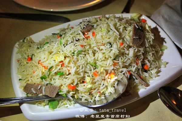 收拾好后立即去市场,在一家私人钱庄以1:102.3换了些巴基斯坦卢比,然后在旁边一家非常讲究的饭店叫了一份牛肉炒饭,一份炖羊肉和两个囊,总价才820卢比!羊肉做得太好吃了,而且那份量要是在深圳至少也得60元!吃完饭,酒店经理还特意请我们与他合影留念。