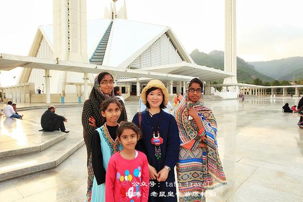 破旧而拥挤的小巴车驰骋在伊斯兰堡宽阔整洁的康庄大道上。不久,我们被召唤在一个十字路口下车,热情的巴基斯坦人民纷纷用手语告诉我们:去大清真寺,请右转直走!