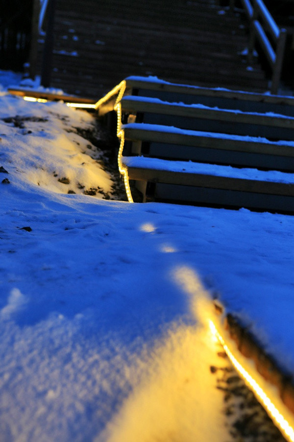 阳台被雪裹得格外梦幻。
