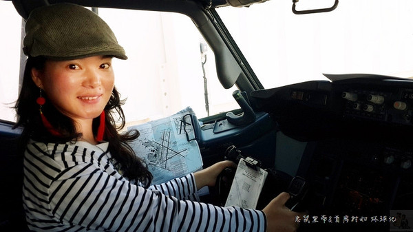 刹那间,村妇就坐到了机长的位置上,变成了飞行员。皇帝赶紧给她和副驾驶拍了个合影。估计是村妇看上去太天真可爱,所以获得了特别关照。