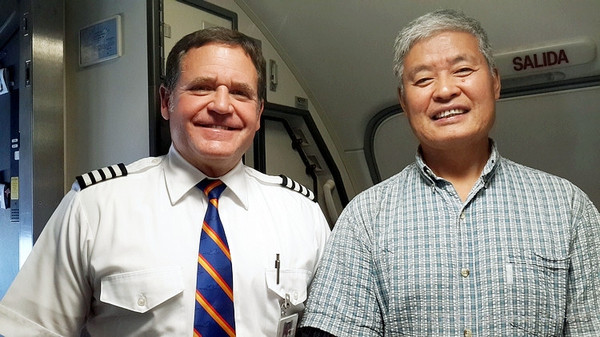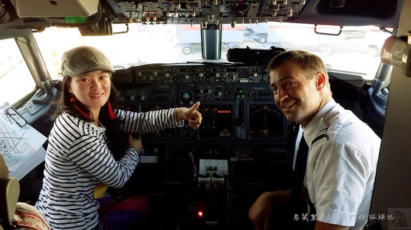 我俩刚要往里走,一位空姐突然打开驾驶舱门问村妇:你想跟机长合影不?