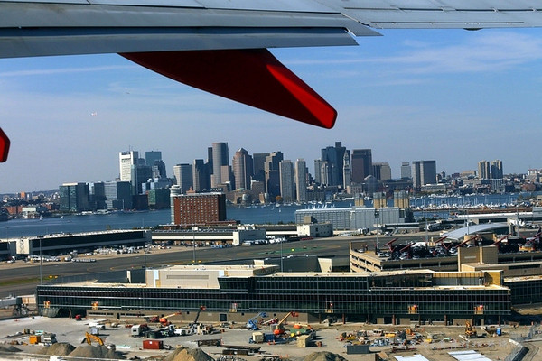 从波士顿飞洛杉矶,我们俩几乎是最后登机的。