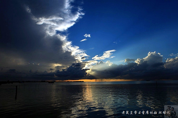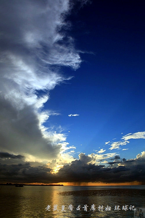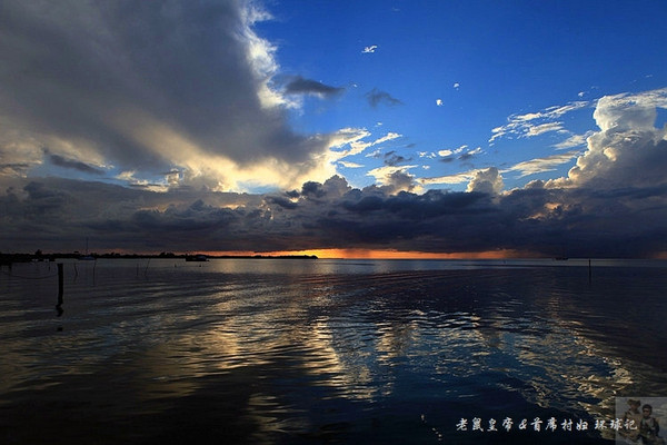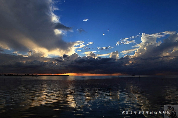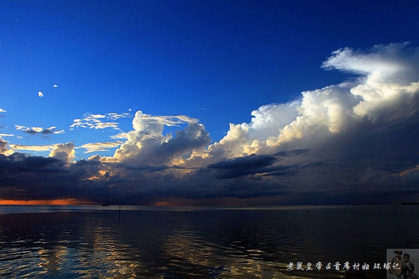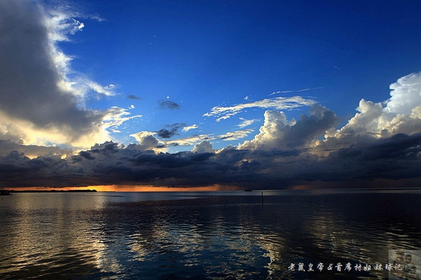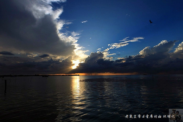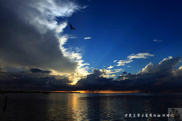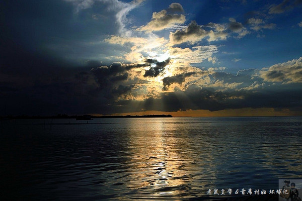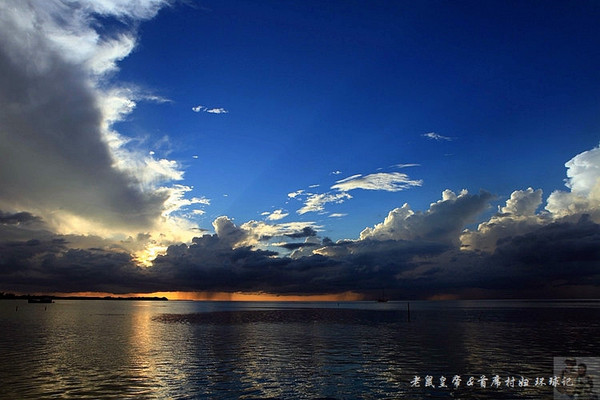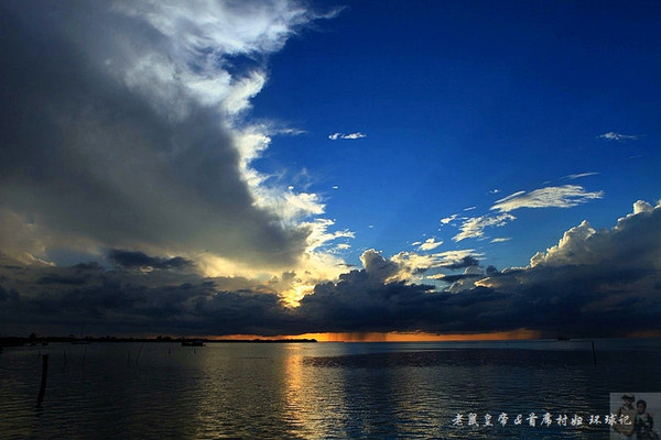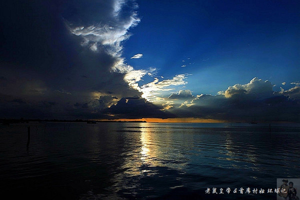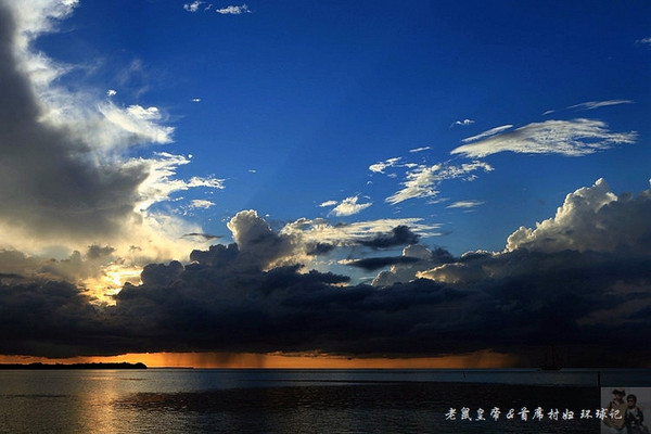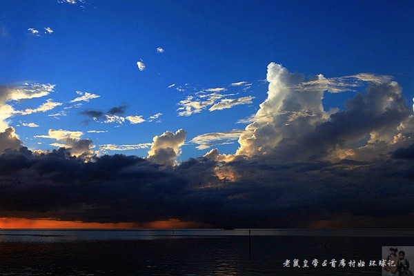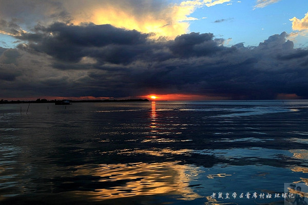 如果夕阳仅仅在大海远处的地平线上表演,未免过于苍白。是云,那黑白相间变幻无穷的云,令汪洋落日更为壮观。