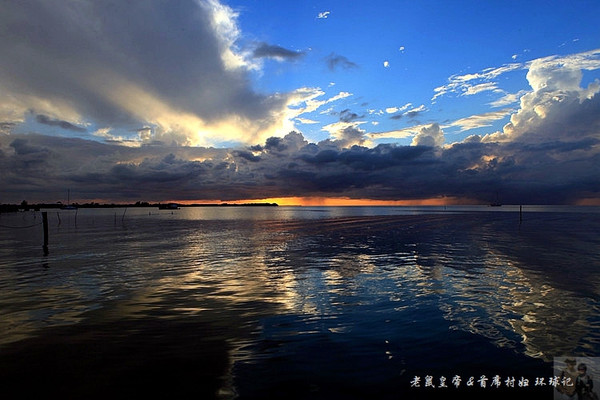 落日余威,尚能将大海的一半抛光。