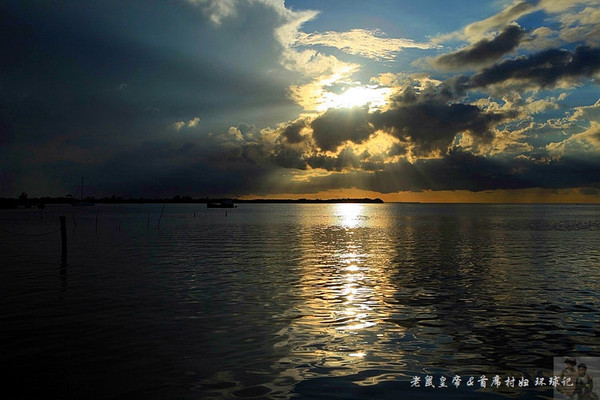 如镜的水面,参透了夕阳的锋芒。