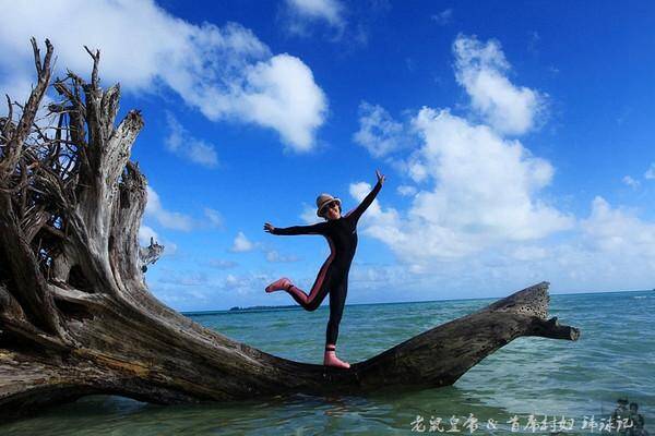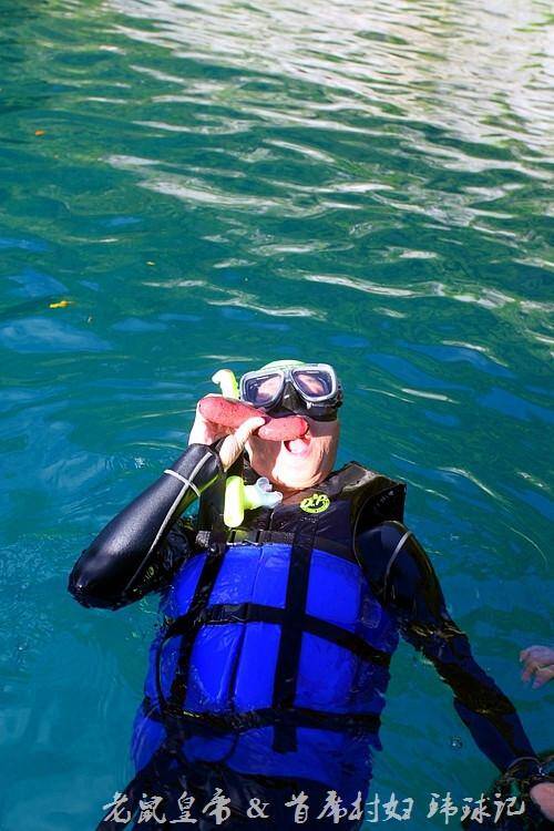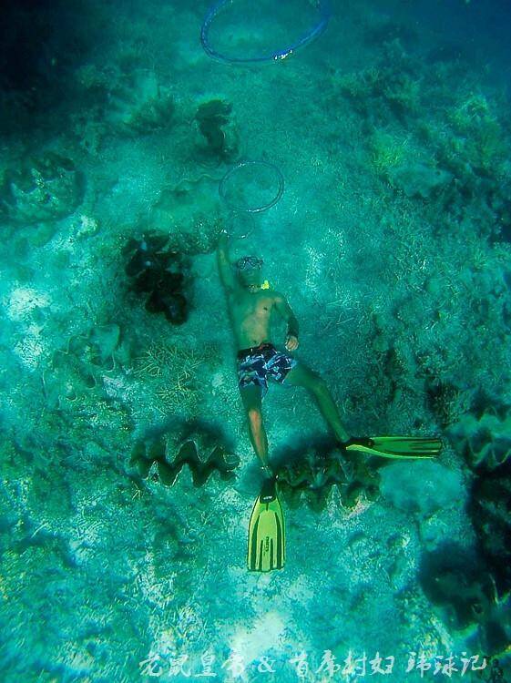 百年干贝城里生长着年逾百岁的活着的砗磲贝,为了感受它们那高龄却敏感而柔软的肉肉,果断地脱掉了救生衣一个猛子就扎进了太平洋!别以为不会游泳就能很轻易地沉下去,若不是被Jerry兄狠狠滴压下去,村妇是摸不到砗磲贝的呀!好吧,村妇是不会游泳的,为了拍一张旗袍潜水照也真是拼了!这是拿生命去旅行的节奏啊!!